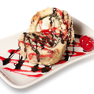 Vanilieis med hjemmelavet karamelsovs, jordbær og rullade